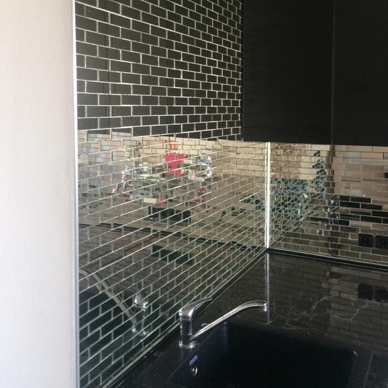 Использована зеркальная квадратная плитка с фацетом.