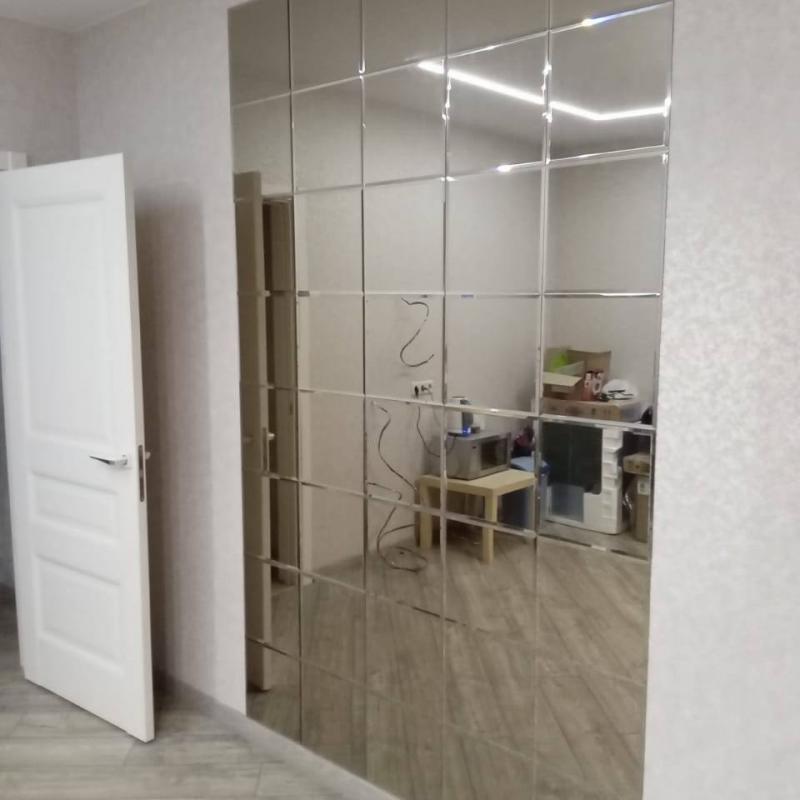 Использована зеркальная квадратная плитка с фацетом.